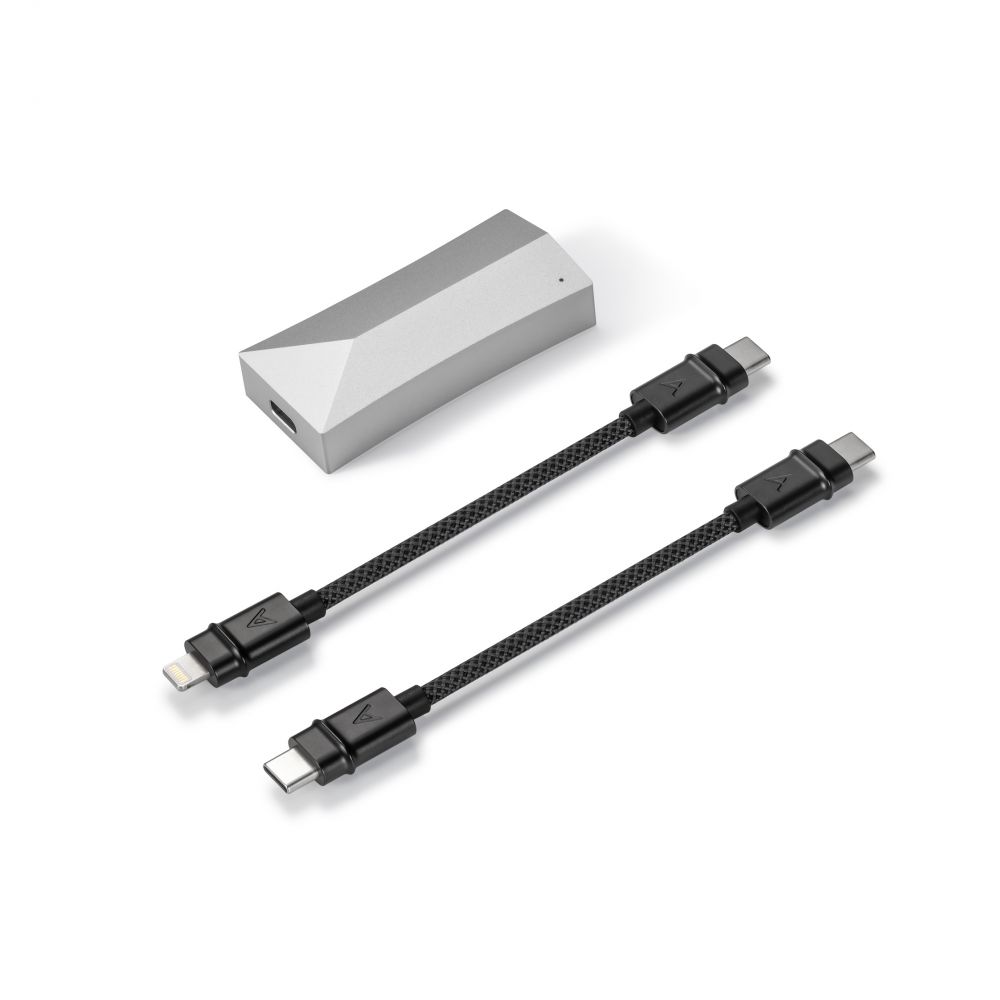 Die exklusive Verstärker-Schaltung des AK HC4 gewährleistet eine stabile Ausgangsleistung und erstklassigen HiFi-Sound. Mikrowiderstände und Kondensatoren kleinster Bauform sorgen für eine kompakte Grösse ohne Leistungseinbussen. Damit der AK HC4 sowohl mit Android- als auch mit iOS-Geräten verwendet werden kann, werden zwei hochwertige doppelt abgeschirmte Kabel mitgeliefert, eines mit USB-C und eines mit Lightning Stecker.