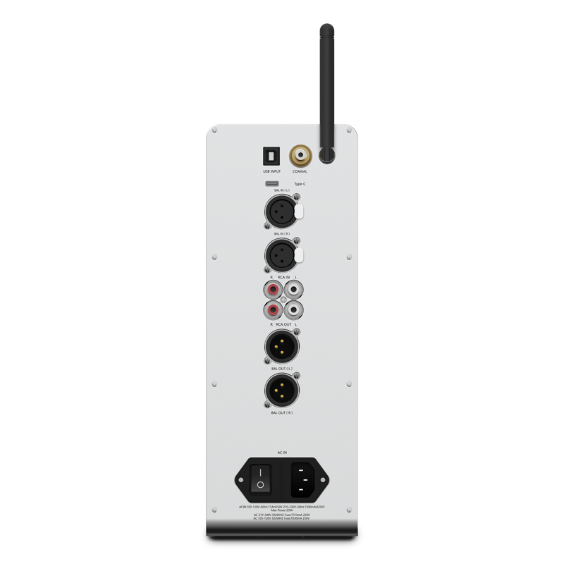 USB-C, USB-B und Koaxial Eingang an der Rückseite