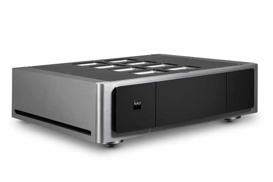 So komplex der Innenaufbau des Gehäuses ist, so schlicht gibt sich die Außenansicht. Die massive Frontplatte, der Deckel und das verwindungssteife, extrem stabile Chassis glänzen im für die NAD MASTERS Serie typischen zweifarbigen schwarz-silbernen Look.