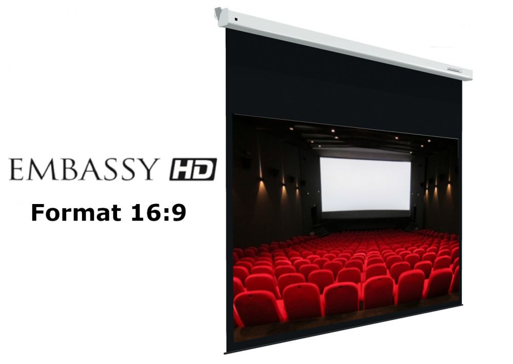 L’Embassy HD est un écran de vidéoprojection motorisée qui vous séduira par sa simplicité et sa robustesse. Simple à installer, il offre une image nette, précise et agréable.