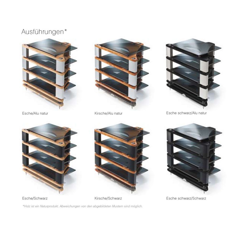Les supports d'équipements Naim Fraim ont été conçus minutieusement pour servir de plate-forme propice à la maximisation des performances des produits électroniques Naim. Chaque niveau est soigneusement isolé des autres par une interface cône-cuvette. Un socle double couche contribue également à isoler l'ensemble des effets de résonance. Une tablette secondaire en verre trempé se pose sur des découpleurs à bille et contact minimum, pour une isolation encore plus efficace.