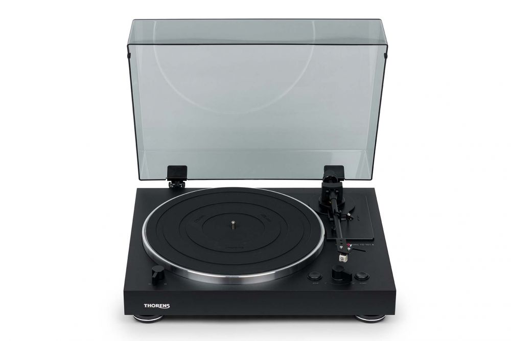 Facile à utiliser et à intégrer dans tout système hi-fi, la platine vinyle Thorens TD 101 A constitue une excellente solution pour faire ses premiers pas dans le monde du vinyle.