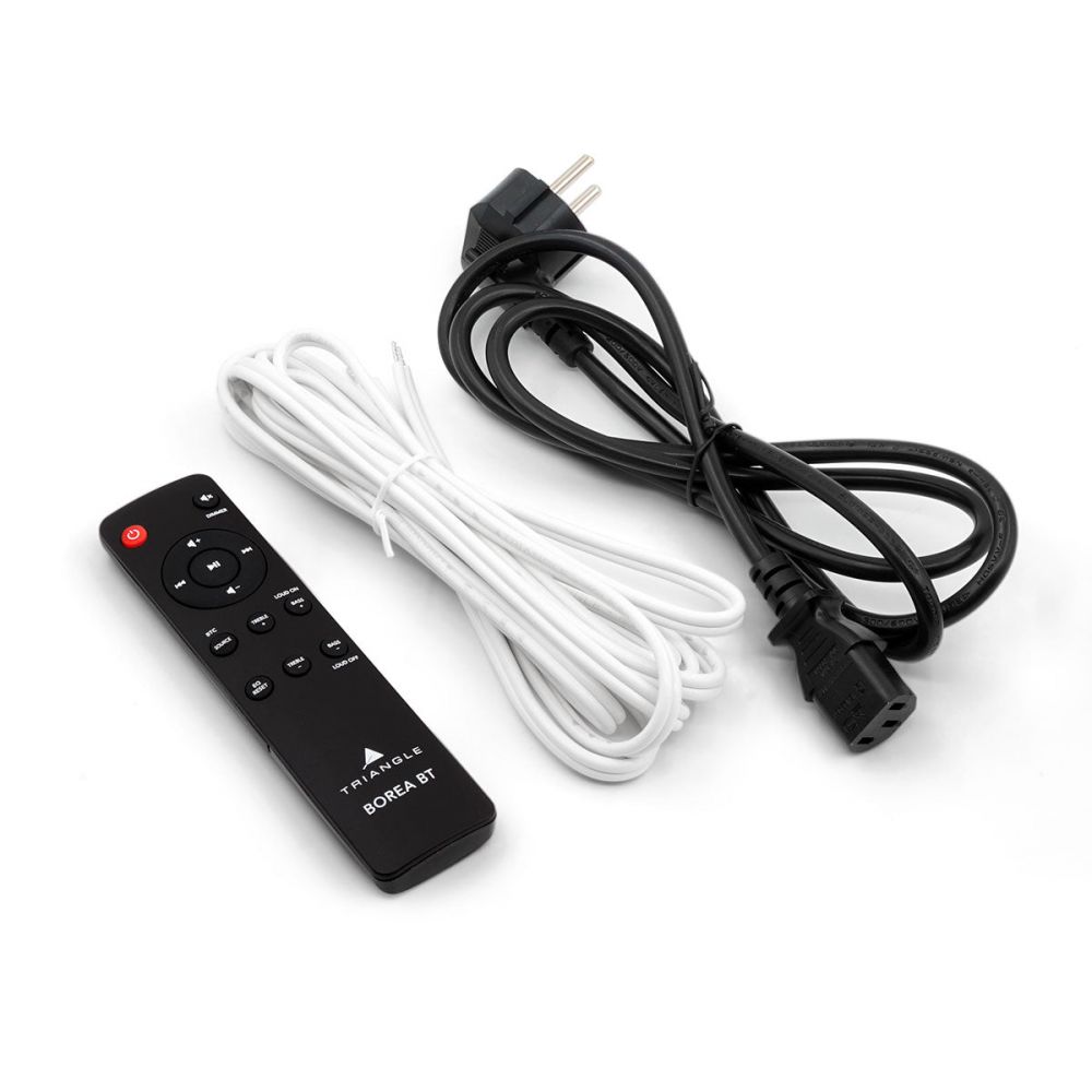Une télécommande radio d’une portée de plus de 15 mètres et ce malgré les obstacles (murs, meubles,), un câble d’alimentation et un câble haut-parleur de 3m pour relier l’enceinte amplifiée à l’enceinte passive sont fournis avec les enceintes.