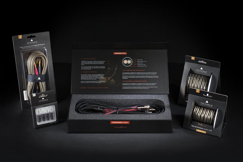 Fleuron de la gamme, les conducteurs du câble Triangle Symphonie SYS30A sont composés de brins OFHC de très haute pureté (cuivre désoxygéné, 99.999%) bénéficiant d’un traitement spécial réduisant les pertes au maximum. Afin d’éliminer toute distorsion et perturbation électromagnétique, les conducteurs bénéficient d’une double gaine isolante en polychlorure de vinyle séparée d’une feuille antistatique. Le tout est agrémenté d’une gaine externe en tissu assurant une meilleure protection. Montées en usine, les fiches bananes disposent d’un traitement spécial (placage argent) minimisant les distorsions. Les capsules en aluminium anodisé assurent une excellente protection du signal. Disponibles en câbles montés de 2x2m50 (SYS25A), 2x3m (SYS30A) et 2x5m (SYS50A) dans une section de 2.5mm.