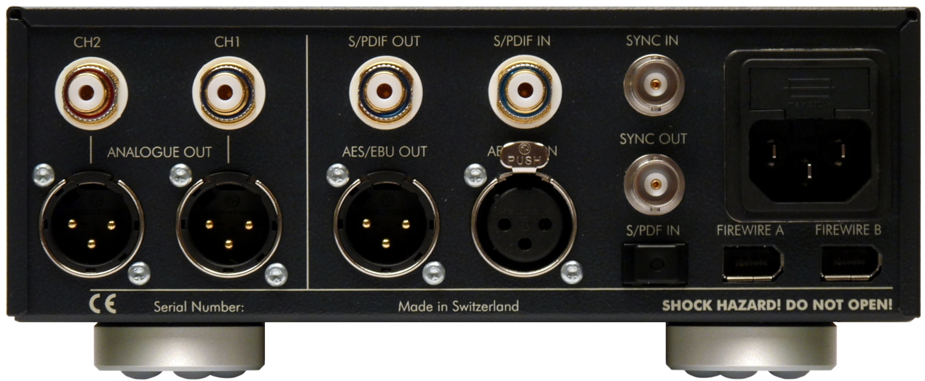 Digital Outputs: AES/EBU on 1 XLR, 1 RCA, Firewire
