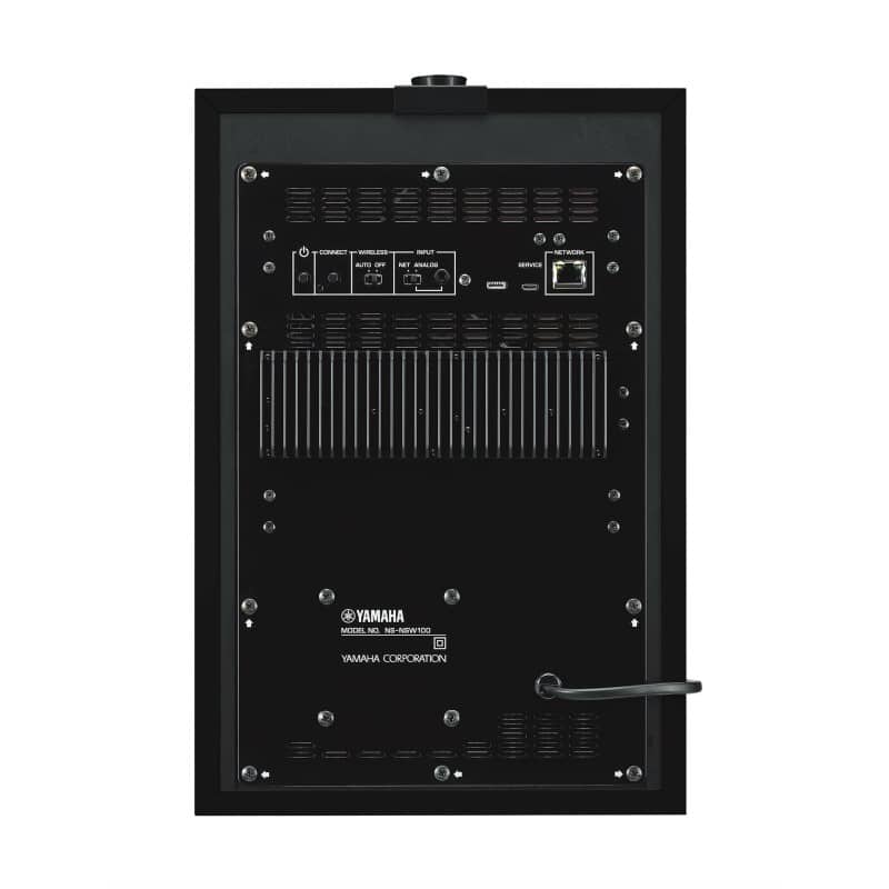 Le caisson de basses sans fil Yamaha MusicCast SUB 100 est équipé d'un haut-parleur de 20 cm chargé en bass-reflex, associé à un ampli de 130 watts. Le résonateur bass-reflex est lié au système Yamaha Advanced YST II (Yamaha Active Servo Technology II) qui optimise la diffusion des très basses fréquences dans la pièce d'écoute. La réponse en fréquence du caisson couvre une plage comprise entre 28 Hz et 300 Hz (coupure ajustable).
